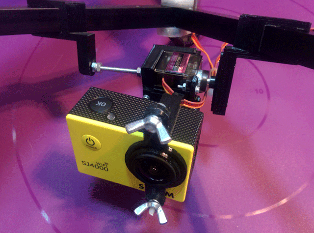 Мы разработали очень простой и функциональный подвес для популярной камеры SJ4000 на основе сервоприводов. Он позволяет стабилизировать видео с борта БПЛА и может быть напрямую подключен к полетному контроллеру от DJI. Вот так выглядит наш подвес в сборе: