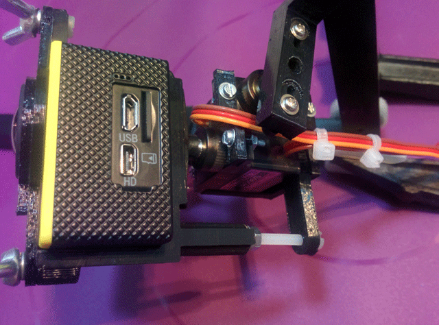Хочется отметить, что мы много внимания уделили устойчивости конструкции. Детали подвеса не висят на валах сервоприводов. Все валы как-бы имеют продолжения и исключены вибрации в местах, где качалки надеты на валах приводов. Крепление самой камеры в нашей конструкции также выполнено очень просто, надежно и легко разбирается.