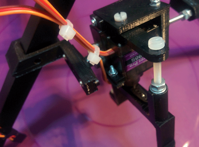 Пластиковый крепеж мы вклеили в напечатанные детали. Сами сервоприводы должны быть дополнительно склеены между собой двухсторонним скотчем. В итоге у нас получилось вот так: