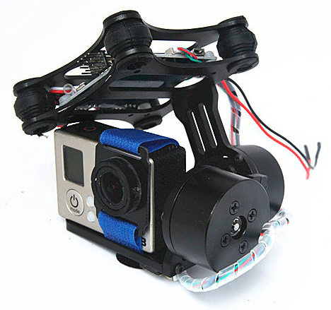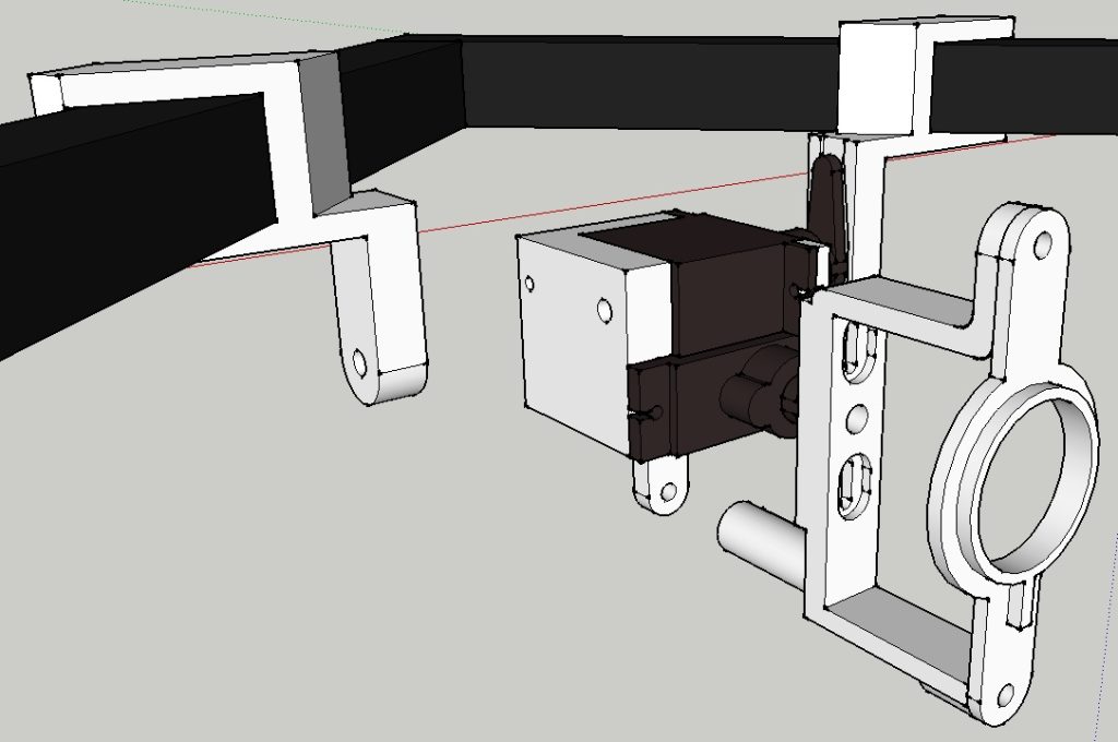 Альтернатива таким подвесам — простые конструкции на основе сервоприводов. Они гораздо менее плавные, прочные и надежные, но зато могут управляться напрямую с основного контроллера, весят гораздо меньше и стоимость их выходит во много раз ниже. Мы не планируем использовать свой коптер для профессиональной съемки, но хотим по максимуму использовать возможности, которые у нас уже есть, поэтому мы решили делать конструкцию на основе сервоприводов.