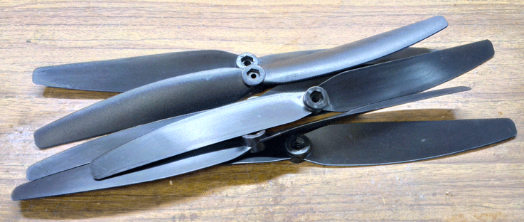 Винтов покупать стоит с большим запасом. У нас большинство первых полетов заканчивались не потому что сели аккумуляторы или надоело, а потому что надо менять очередной сломанный винт. Благо, стоит они недорого. При покупке необходимо учитывать размер и направление вращения. Лучше брать комплекты стандартного и обратного вращения. Мы приобрели три комплекта по 3$ вот таких пропеллеров: