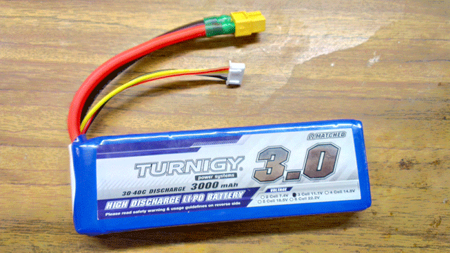 Для питания в полете применяют специальные литий-полимерные (LiPoly) аккумуляторы. При выборе аккумуляторов следует учитывать их емкость, количество ячеек и максимальный разрядный ток. Емкость (в амперах) напрямую влияет на продолжительность полета, но не стоит увлекаться — чем больше емкость, тем больше масса! Для нашего коптера мы покупали аккумуляторы на 3А. Количество банок определяет выходное напряжение. Каждая банка может быть заряжена до 3-4 В. Необходимо понимать, что 3х баночный аккумулятор на 3А запасает в три раза больше энергии, чем однобаночный, но и тяжелее в три раза. Максимальный разрядный ток — это максимальный ток, который может выдавать аккумулятор в течении 10с. Мы купили аккумуляторы с разрядным током 40С. Это значит, что он сможет выдавать до 120А тока в пике. Это больше чем могут потреблять двигатели (четыре по 20А). Аккумуляторов тоже стоит купить парочку, чтобы менять по мере использования. Мы купили два по 22$.