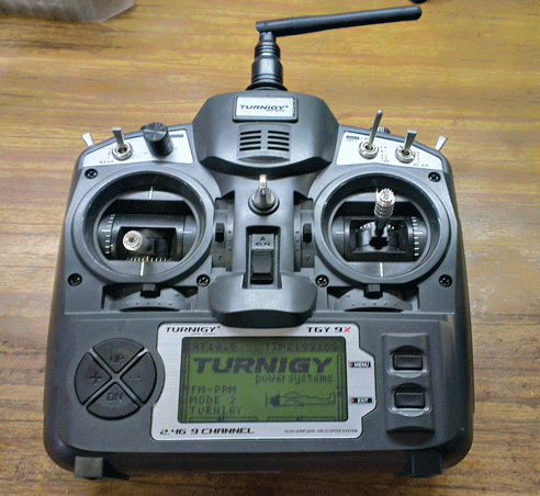Представляет собой передатчик с пультом и приемник. Отличаются друг от друга количеством каналов и частотой. Частота может быть 433МГц, либо 2,4ГГц. В первом случае придется повозиться с длиннющими антеннами, поэтому лучше покупать передатчик на 2,4ГГц. Аппаратура радиоуправления штука очень полезная и на ней лучше не экономить, так как она вполне может пригодиться в других проектах. Для своих задач мы приобрели самый оправданный и распространенный вариант — Turnigy 9x. Стоимость такого пульта 54$. К пульту желательно сразу купить специальные аккумуляторы, но можно воспользоваться и простыми батарейками типоразмера AA, которых потребуется 8 штук.